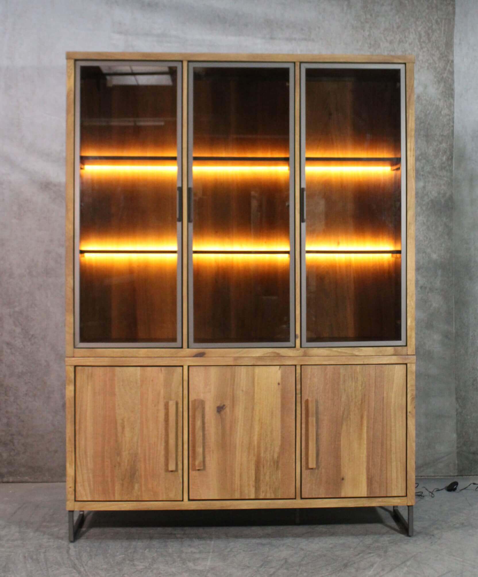 Ø - cmForm - Bestehend aus - Details >> Highboard Mangoholzfurnier smoked/Metall anthrazit mit Beleuchtung Highboards785,00 € -